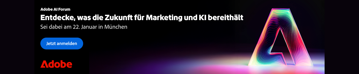 Tauche am 22. Januar 2026 in München in die neuesten Adobe-Innovationen rund um Marketing & KI ein. In Keynotes, praxisnahen Sessions und Live-Demos zeigen Adobe-Expert:innen, IBM und Kunden, wie agentenbasierte KI Workflows beschleunigt, Content skaliert und personalisierte Kundenerlebnisse messbar optimiert.