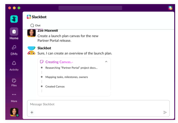Aus dem bisherigen Hinweis- und Benachrichtigungs-Tool soll ein KI-gestützter Arbeitsassistent geworden sein, der nicht nur reagiert, sondern aktiv unterstützt. Slack selbst spricht in einem aktuellen Post von einem „persönlichen KI-Agenten“, der direkt in die tägliche Kommunikation eingebettet ist.