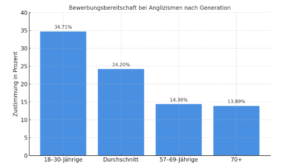 Junge Menschen hingegen zeigen sich aufgeschlossener – für sie sind Anglizismen nicht nur vertraut, sondern mitunter sogar ein Anreiz: Rund 35 Prozent der 18- bis 30-Jährigen gaben an, dass eine „moderne“ Sprache in Jobanzeigen ihre Bewerbungslust steigert.