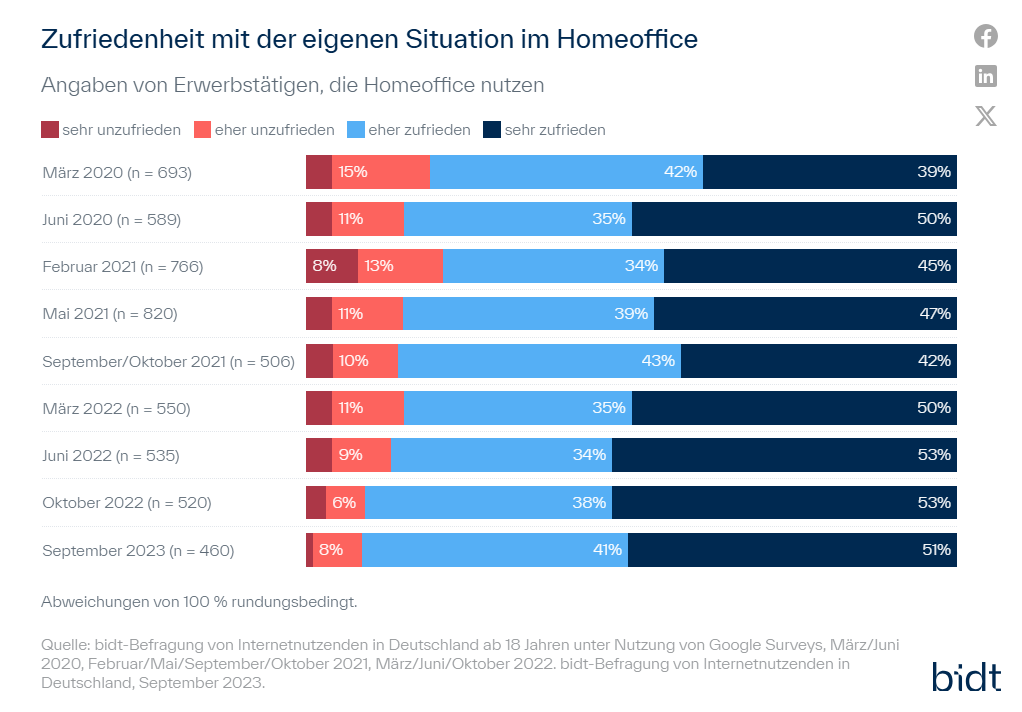92 Prozent der Home-Office-Nutzenden ist mit der eigenen Arbeitssituation zufrieden (mit einem Klick aufs Bild gelangst du zur größeren Ansicht), © bidt