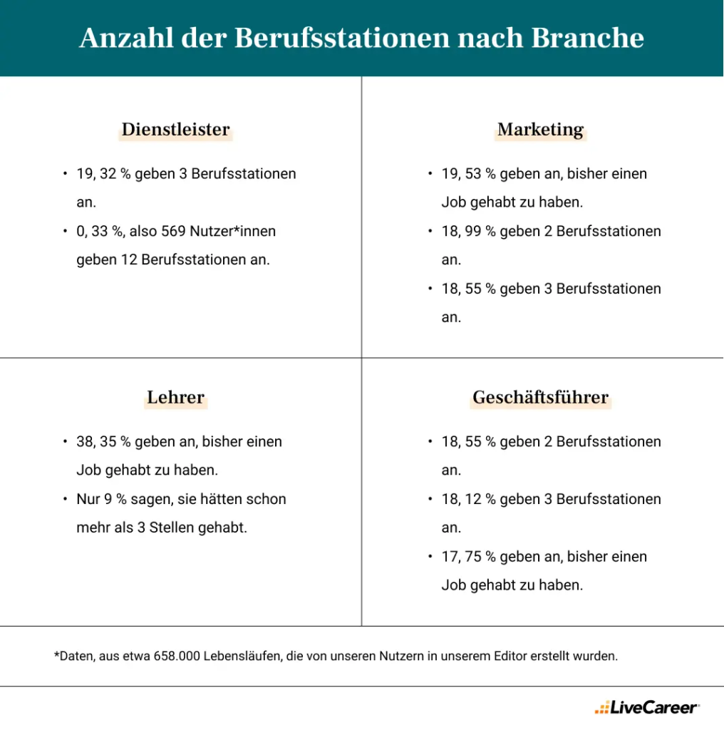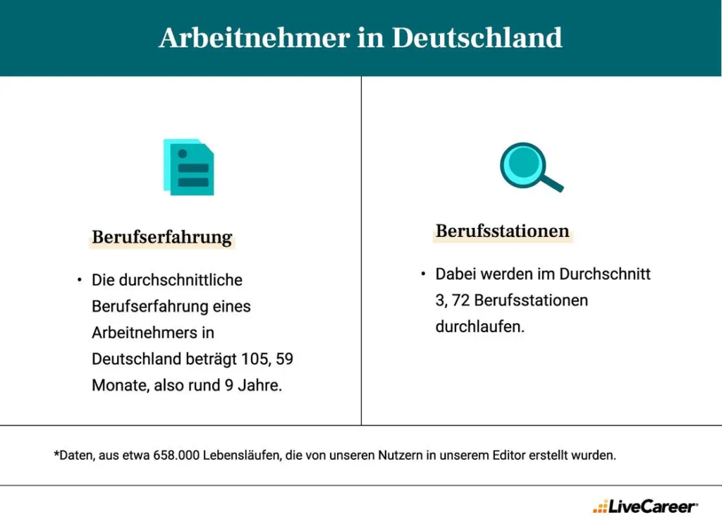 Arbeitnehmer:innen in Deutschland durchlaufen im Durchschnitt 3,72 berufliche Stationen, © LiveCareer
