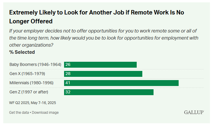 Millennials wünschen sich sogar noch mehr Home Office (mit einem Klick aufs Bild gelangst du zur größeren Ansicht), © Gallup