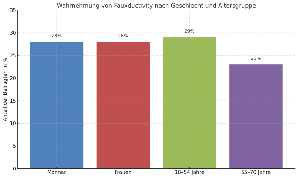 Rund 29 Prozent der 18- bis 54-Jährigen nehmen Fauxductivity in ihrem Unternehmen wahr (die Grafik wurde anhand der Daten von Monster mithilfe von ChatGPT erstellt)