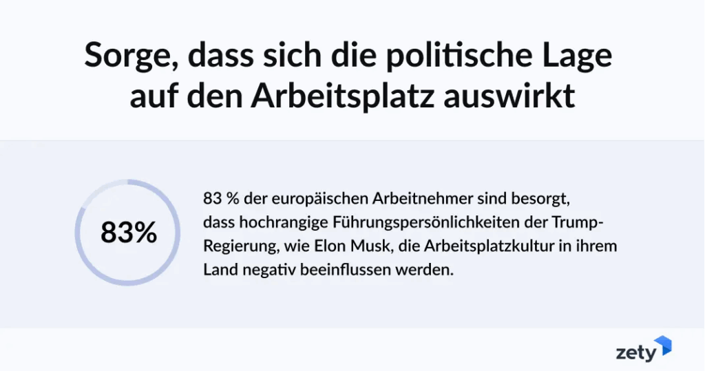 Eine aktuelle Umfrage von zety unter Beschäftigten in fünf europäischen Ländern zeigt: Die Skepsis gegenüber einem Arbeitsplatz nach amerikanischem Vorbild ist groß – und sie wächst. Ganze 83 Prozent der Befragten äußern sich besorgt über den Einfluss von Führungspersönlichkeiten aus den Vereinigten Staaten auf die heimische Arbeitskultur. Namen wie Elon Musk, mit Verbindungen zur Trump-Ära, stehen dabei sinnbildlich für eine Haltung, die auf strikte Kontrolle, grenzenlose Verfügbarkeit und rigide Hierarchien setzt.