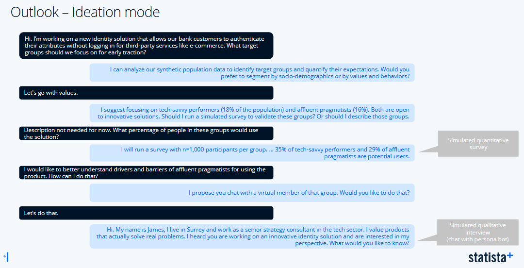So kann die Interaktion mit Statista SynthiePop im Ideation Mode aussehen, © Statista