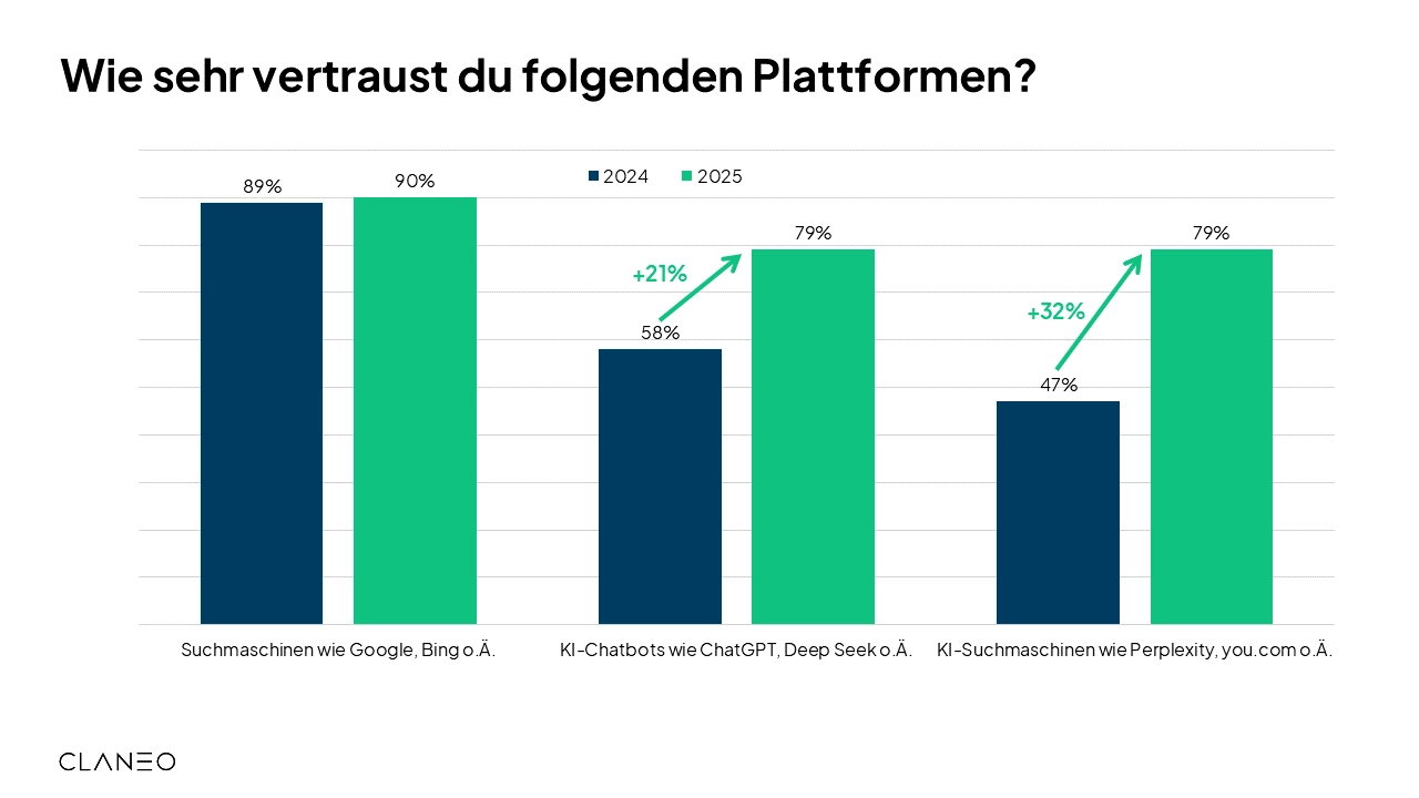 Vertrauen in verschiedene Suchplattformen, © Claneo (mit einem Klick aufs Bild gelangst du zur größeren Ansicht)