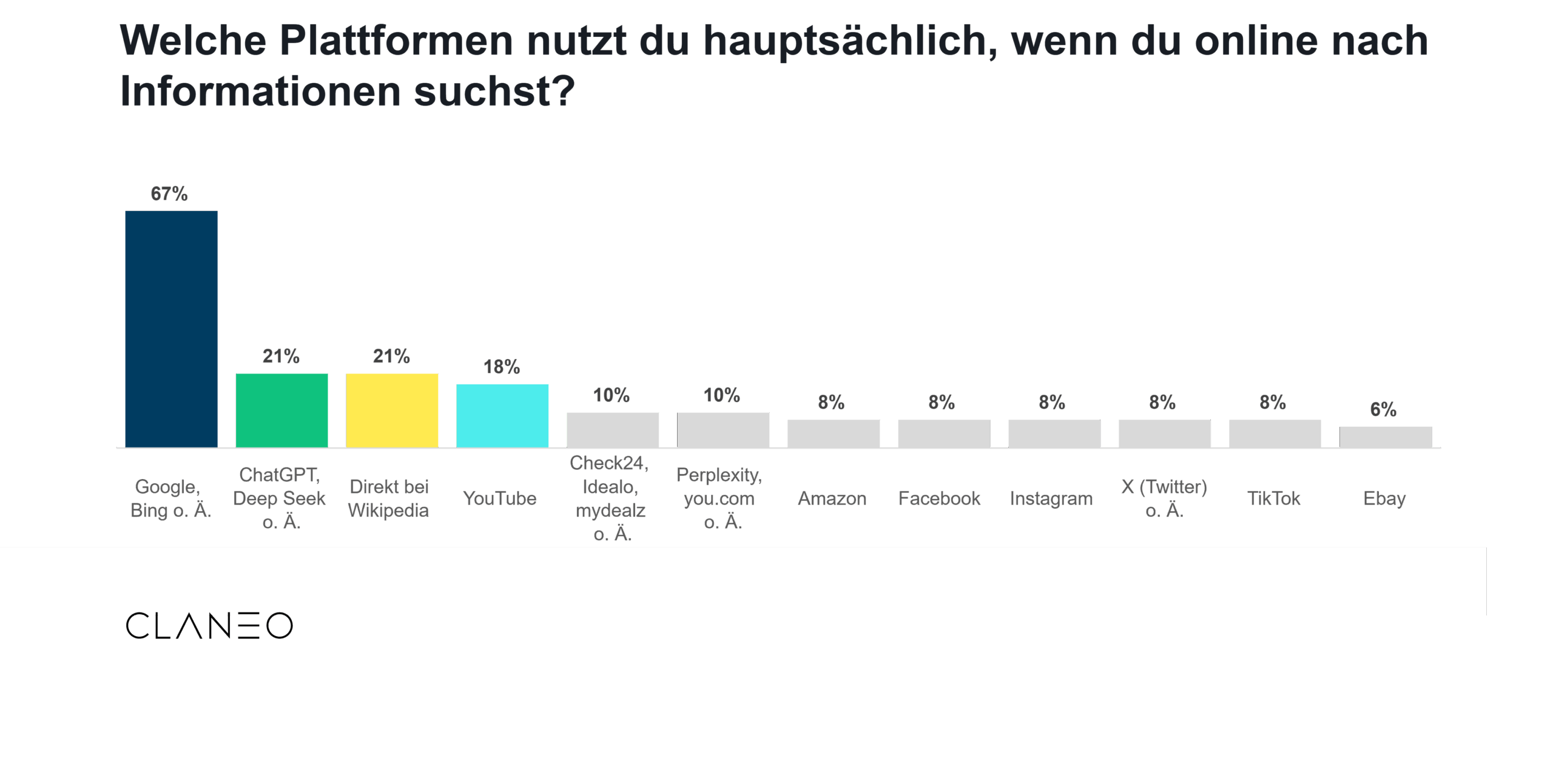 Favorisierte Plattformen für die Informationssuche, © Claneo (mit einem Klick aufs Bild gelangst du zur größeren Ansicht)