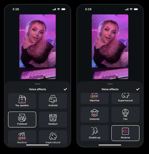Wer Videos nicht nur mit Musik hinterlegen, sondern die eigene Stimme in den Fokus setzen möchte, kann ab sofort auf zehn weitere Voice-Effekte zurückgreifen. Die Effekte, welche Namen wie Android, Supernatural oder Stadium tragen, lassen dich wahlweise wie ein Roboter, geisterhaft oder so, als ob du dich in einer großen Halle befindest, klingen.