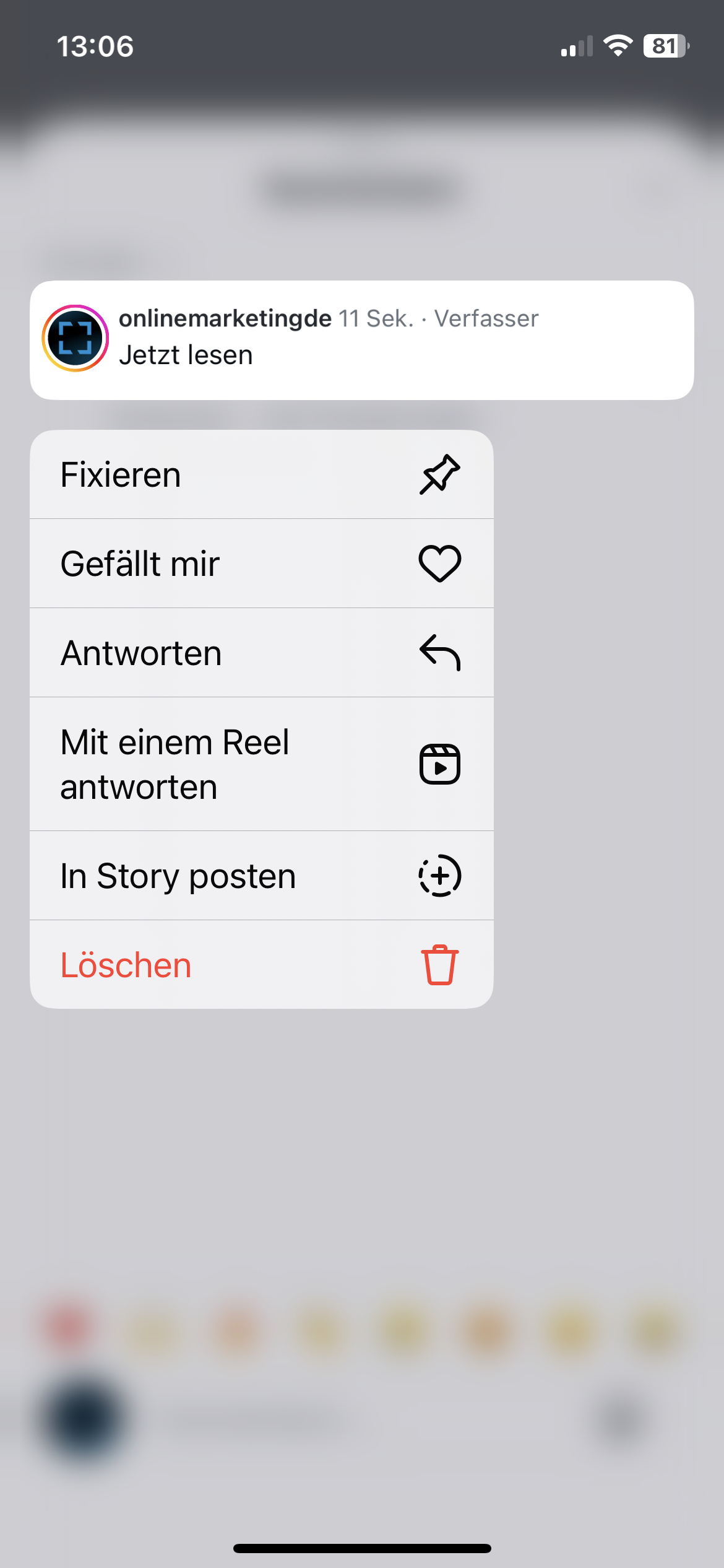 Nutzer:innen können jetzt eigene Kommentare unter Posts fixieren, eigener Screenshot des Instagram Accounts von OnlineMarketing.de