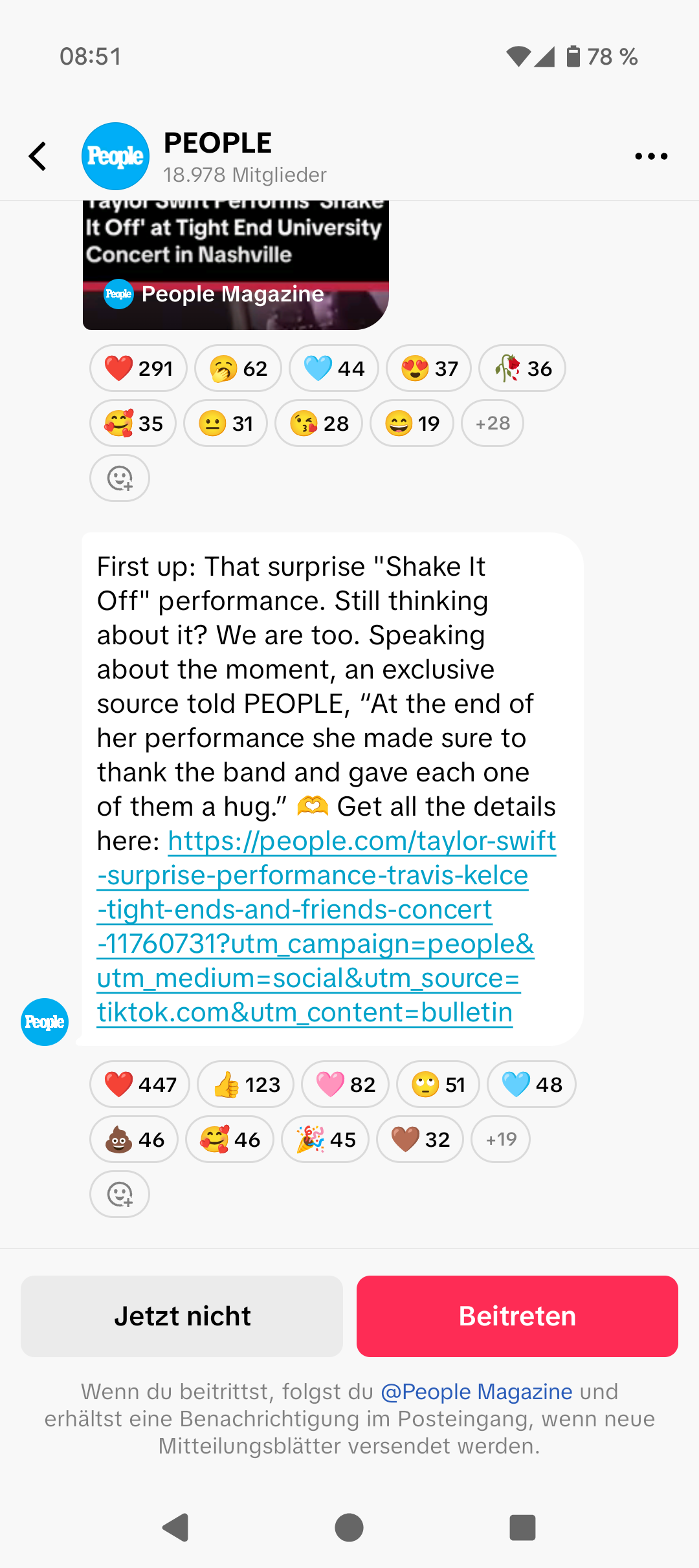 Erkennbar ist das Bulletin Board über ein neues Symbol im Profil – eine Art Sprechblase. Beim Beitritt gibt’s eine Begrüßungsnachricht, danach folgen regelmäßige Updates. People Magazine zählt aktuell rund 19.000 Mitglieder im Testkanal.