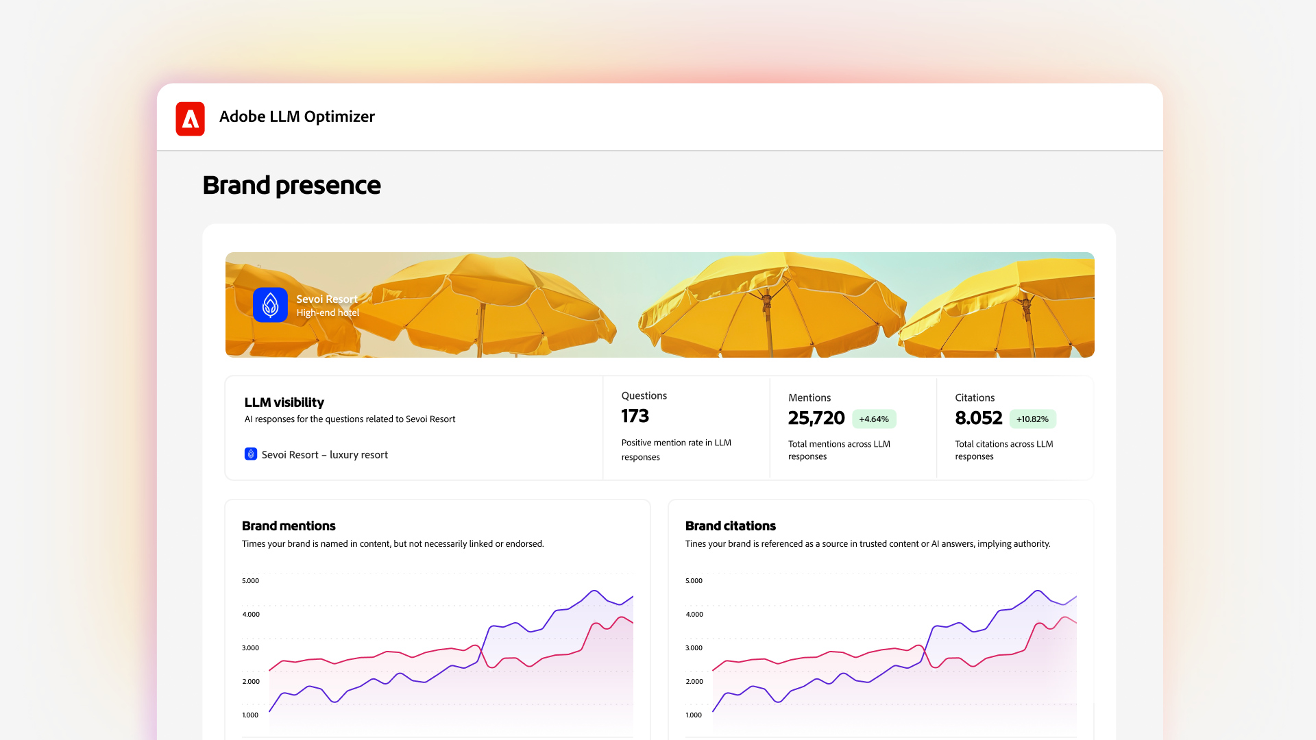 Wie wirkungsvoll eine gezielte Optimierung sein kann, zeigt ein internes Beispiel. Adobes eigenes Marketing Team nutzte den LLM Optimizer, um die Sichtbarkeit von Acrobat zu erhöhen. Die Zitationen für Firefly verfünffachten sich innerhalb einer Woche. Bei Acrobat stieg die Sichtbarkeit im Vergleich zu Wettbewerber:innen um 200 Prozent, während der KI-vermittelte Traffic auf Adobe.com um 41 Prozent zunahm.