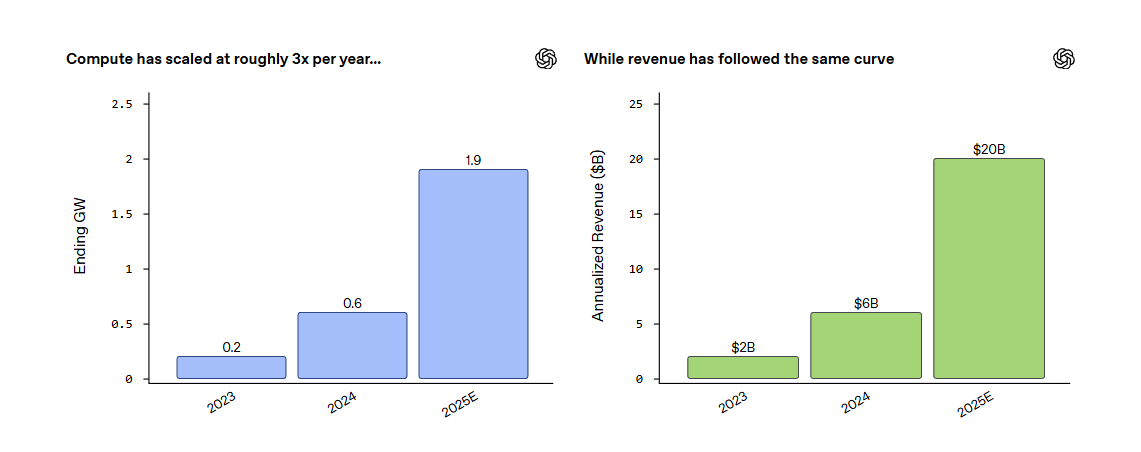 Compute und ARR wurden bei OpenAI zuletzt deutlich skaliert, © OpenAI