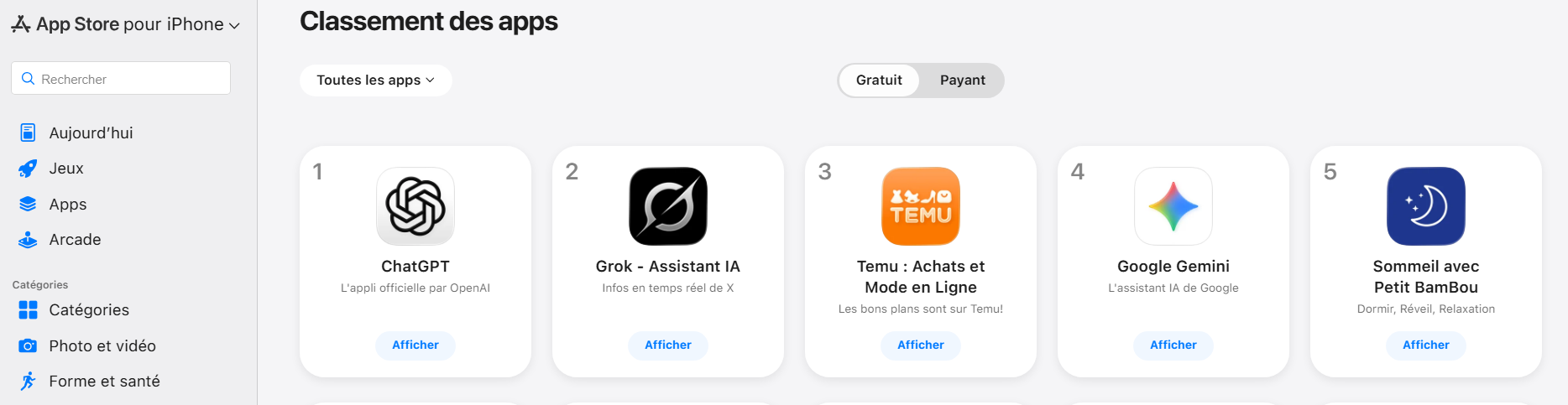 Die App Store Charts in Frankreich am 5. Januar 2026, Screenshot Apple App Store