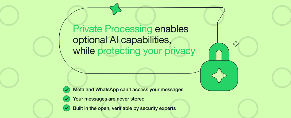 Im offiziellen Blog Post kündigt Meta die Neuerung an und erklärt im Detail, was hinter der Private Processing-Funktion steckt. Es handelt sich, so der Konzern, um eine Technologie, mithilfe derer die KI-Anfragen der User innerhalb eines sicheren Cloud Setups bearbeitet werden können. So soll sichergestellt werden, dass niemand (auch nicht Meta oder WhatsApp) Zugriff auf die persönlichen Nachrichten erhält. Mit diesem Schritt begegnet Meta wachsenden Bedenken bezüglich des Datenschutzes und der Privatsphäre im Rahmen der Nutzung von Meta AI – und schafft den Grundbaustein für KI-basierte Features wie Nachrichtenzusammenfassungen und Schreibempfehlungen.
